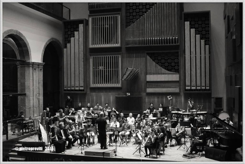 Valentina Abbruzzese (voce), Francesco Altilio (computer), Andrea Arcella (computer), Guido Autorino (computer), Raffaele Barbato (percussioni), Giulia Barbella (clarinetto basso), Andrea Bonetti (fisarmonica), Alessio Bruzzese (sax soprano), Giovanni Cantiello (violino), Giancarlo Cascino (contrabbasso), Dario Casillo (computer), Marco Castaldo (batteria), Alessandro Cerino (chitarra elettrica), Pasquale Cesare (sax tenore), Chiara De Sio Cesari (viola), Adriana Cioffi (arpa), Francesco Colace (oboe), Maurizio Conte (sax tenore), Stefano Costanzo (batteria), Jack D’Amico (pianoforte), Franco De Biase (chitarra elettrica), Mariasole De Pascali (flauto), Gianpiero Di Lecce (clarinetto), Fabio Espasiano (pianoforte), Floriana Evangelista (clarinetto), Francesco Filisdeo (clarinetto), Walter Forestiere (batteria), Mario Formisano (basso elettrico e computer), Marco Francini (voce), Marco Frasca (clarinetto), Alessandra Gargiulo (voce), Isabella Giannattasio (violino), Salvatore Gravina (violino), Ron Grieco (contrabbasso), Vincenzo Gualtieri (computer), Sandra Milena Guida (flauto), Anna Lucia Ianniello (clarinetto), Massimo Imperatore (chitarra elettrica), Claudia Iorio (viola), Pietro Lama (computer), Umberto Lepore (contrabbasso), Francesca Librera (clarinetto), Ciro Longobardi (pianoforte), Cristian Maddalena (computer), Francesco Maddaluno (clarinetto), Chiara Mallozzi (violoncello), Elio Martusciello (conduction), Francesco Massaro (clarinetto basso), Antonio Mastrogiacomo (computer e sax tenore), Sara Medusa (voce), Francesco Messina (violino), Vittorio Benito Migliaccio (fagotto), Sergio Naddei (computer), Agostino Napolitano (clarinetto), Mirjana Iruben Nardelli (computer), Antonello Orlando (chitarra elettrica), Andrea Palermo (viola), Davide Palmentiero (computer e chitarra elettrica), Claudio Panariello (computer), Francesco Panzetti (voce recitante), Christoph Penning (computer), Sara Persico (voce), Giuseppe Pisano (computer), Antonio Raia (sax tenore), Alessandra Ruggiero (violino), Antonio Ruocco (violino), Marco Sannini (tromba), Pietro Santangelo (sax tenore), Paola Sasso (violino), Daniele Schirone (sax tenore), Alessio Sica (percussioni), Stefano Silvestri (computer), Cristian Sommaiuolo (computer), Michele Sorrentino (trombone), Carlo Speltri (computer), Massimo Varchione (computer), Elisa Vito (fagotto), Giuseppe Vietri (sax tenore), Marcello Vitale (chitarra elettrica e mandolino elettrico).